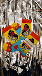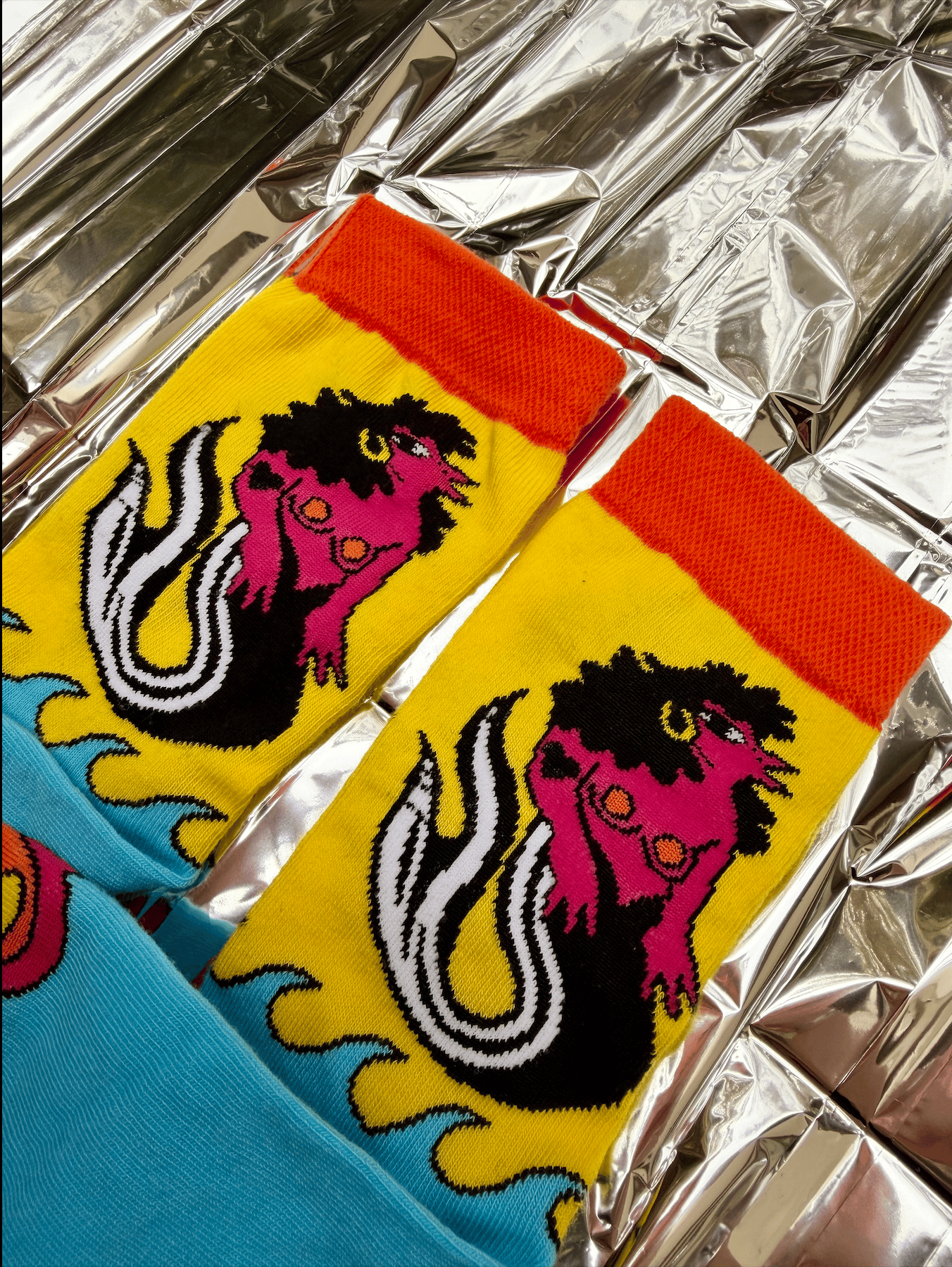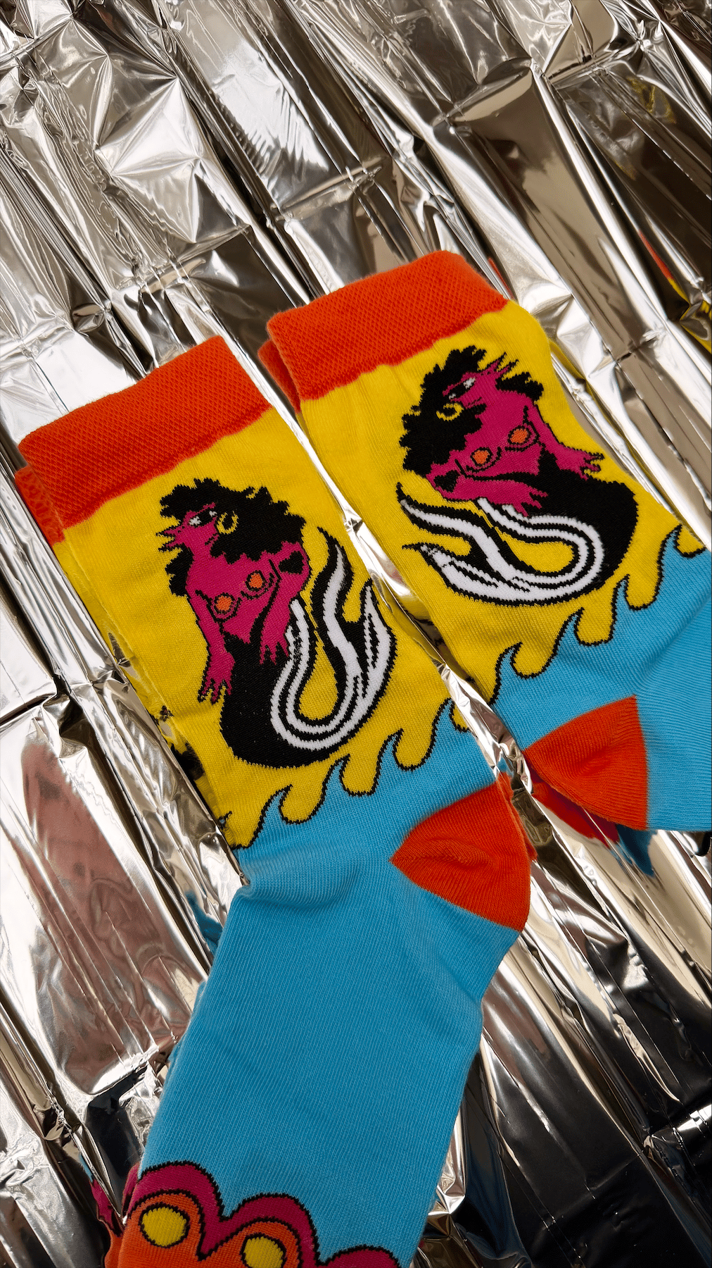 Chaussette mixte colorée (rose vif, orange vif, bleu ciel, noir et jaune)